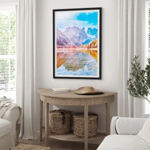 Poster in cornice nera - Paesaggio montano con lago e colori autunnali - 50x70cm - E nei monti è già autunno - Decorazione murale moderna per soggiorno e camera da letto ARTTOR