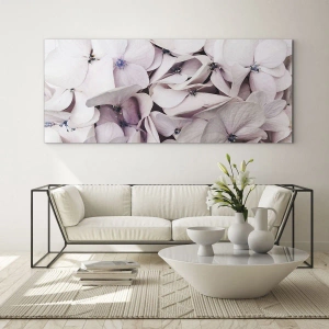 Quadro su vetro - Delicate ortensie rosa chiaro in primo piano - 50x70cm - Un'alluvione di fiori - Decorazione murale moderna per soggiorno e camera da letto ARTTOR