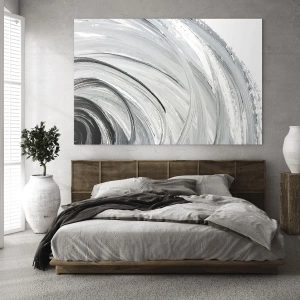 - Il dipinto raffigura una spirale in bianco e nero creata con pennellate dinamiche. Una scelta perfetta per spazi minimalisti e moderni, che aggiunge profondità agli interni.