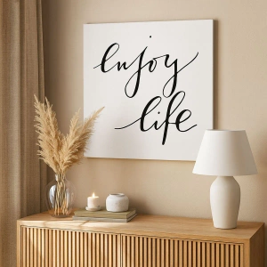- Una moderna stampa su tela con la frase "Enjoy Life" in elegante calligrafia su sfondo bianco. Perfetta per interni minimalisti e moderni, aggiunge un tocco di ispirazione.