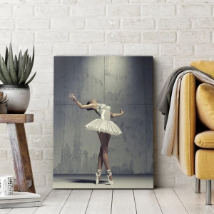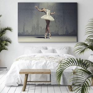 "Leggero come un uccello" è una stampa su tela che unisce la delicatezza del balletto all'estetica minimalista. Raffigura una ballerina in abito bianco, che esegue movimenti aggraziati contro un muro grezzo di cemento. Questo contrasto conferisce all'opera un carattere unico, unendo la bellezza dell'arte a uno stile moderno.