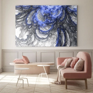 Quadro su vetro - Astrazione dinamica nelle tonalità del blu e del grigio - 50x70cm - La nascita dell'onda - Decorazione murale moderna per soggiorno e camera da letto ARTTOR