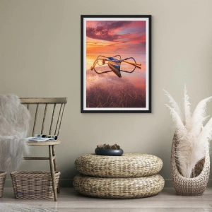 Poster in cornice nera - Una barca in acque calme al tramonto - 70x50cm - La pace della sera tropicale - Decorazione murale moderna per soggiorno e camera da letto ARTTOR