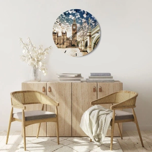Orologio da parete - Orologio in Vetro - Il Big Ben e il ponte di Westminster illuminati dal sole a Londra - 30x30cm - Cirri sul Tamigi - Decorazione murale moderna per soggiorno e camera da letto ARTTOR