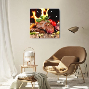 Orologio da parete - Orologio in Vetro - Bistecca con verdure al fuoco - 30x30cm - Incantate dal fuoco - Decorazione murale moderna per soggiorno, cucina e camera da letto ARTTOR