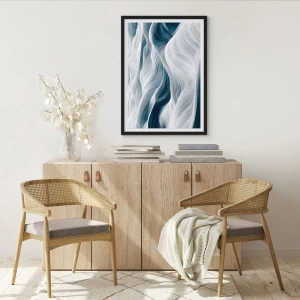 Poster in cornice nera - Onde astratte nei toni del bianco e del blu navy - 50x70cm - Onde bianche e blu - Decorazione murale moderna per soggiorno e camera da letto ARTTOR