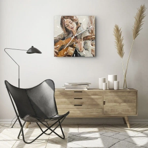 Orologio da parete - Orologio in Vetro - Ritratto di una ragazza che suona la chitarra in stile pittorico con colori caldi. - 30x30cm - Concerto per chitarra e cuore di ragazza - Decorazione murale moderna per soggiorno e camera da letto ARTTOR