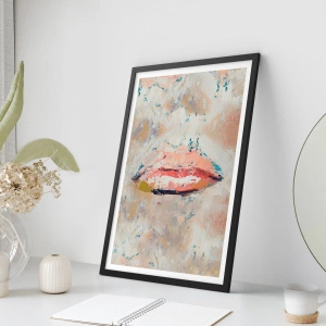 - Il poster raffigura delle labbra astratte in una palette pastello con accenti di beige, rosa e toni tenui. La composizione in stile impressionista aggiunge espressione artistica ed eleganza agli interni.