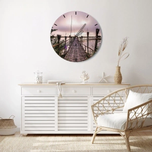 Il paesaggio evoca la filosofia di vita asiatica: consapevolezza, semplicità e contatto con la natura. Le calde tonalità del sole al tramonto e i riflessi sulla superficie dell'acqua celano pace e respiro profondo. L'orologio da parete diventa non solo un elemento funzionale, ma anche un'immagine meditativa.
