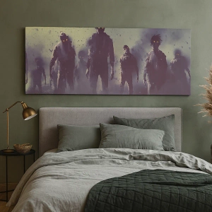 Quadro su tela - Stampe su Tela - Scena scura con sagome con occhi gialli - 50x70cm - Attenzione! Arrivano - Decorazione murale moderna per soggiorno e camera da letto ARTTOR