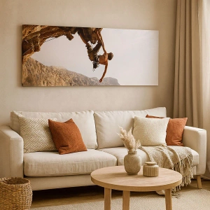 Quadro su tela - Stampe su Tela - Uno scalatore su una ripida scogliera in montagna sotto il sole - 120x50cm - Il mondo ristretto in una mano sul bordo del masso - Decorazione murale moderna per soggiorno e camera da letto ARTTOR