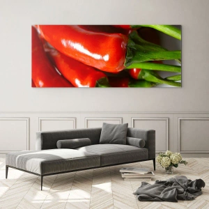 Quadro su vetro - Peperoncini rossi con gambi verdi - 50x70cm - Succosi, lisci e lucenti - Decorazione murale moderna per soggiorno e camera da letto ARTTOR