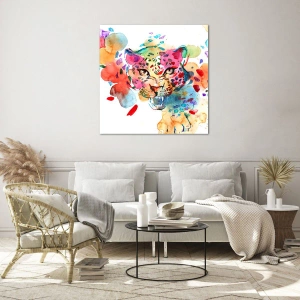 Quadro su vetro - Ritratto ad acquerello colorato di un leopardo - 100x70cm - La bella e la bestia - Decorazione murale moderna per soggiorno e camera da letto ARTTOR