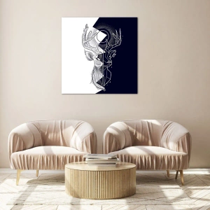 Quadro su vetro - Disegno geometrico di un cervo su sfondo bianco e nero - 70x50cm - Lotta e unità degli opposti - Decorazione murale moderna per soggiorno e camera da letto ARTTOR