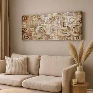 Quadro su tela - Stampe su Tela - Composizione astratta con lettere e frammenti di testo - 70x50cm - Unificando le chiacchiere - Decorazione murale moderna per soggiorno e camera da letto ARTTOR
