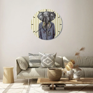 Orologio da parete - Elegant by Nature - Elegante disegno di un elefante in abito su uno sfondo a righe verticali