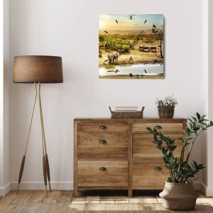 Orologio da parete - Dall'Eden scorreva un fiume... - Savana con animali selvatici in un abbeveratoio al tramonto