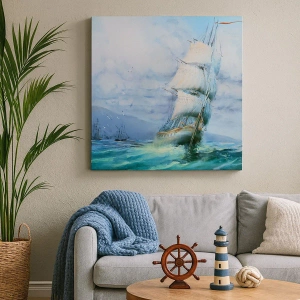 Il dipinto, stampato su tela di alta qualità in formato orizzontale 70x50 cm, è perfetto da appendere in soggiorno, camera da letto o ufficio. Il motivo nautico si adatterà perfettamente agli interni eleganti, conferendo loro carattere e uno stile unico.