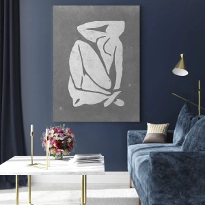 Quadro da parete - In Thought - Silhouette minimalista di una donna su sfondo grigio