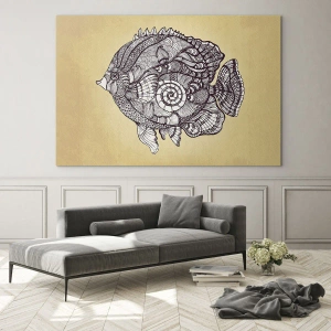 Quadro murale - Dall'oceano degli ornamenti - Pesce cartone animato con ornamenti su sfondo beige