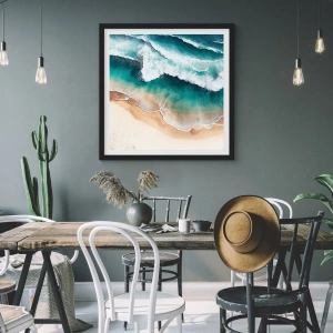 Poster in cornice nera - Vista della spiaggia e delle onde del mare nelle tonalità del turchese - 70x50cm - L'eterno incontro - Decorazione murale moderna per soggiorno e camera da letto ARTTOR