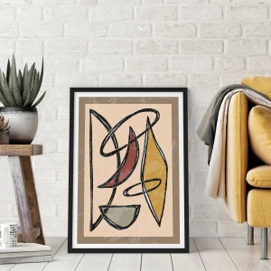 "Composizione - Archi e Ovali" è uno straordinario poster che combina forme geometriche con l'espressione artistica. La composizione astratta nei toni caldi del beige, marrone e oro è enfatizzata da decise linee nere, che conferiscono all'opera un ritmo e una struttura caratteristici. Grazie alla texture nitida e ai dettagli discreti, l'illustrazione acquisisce profondità e un inconfondibile stile retrò.