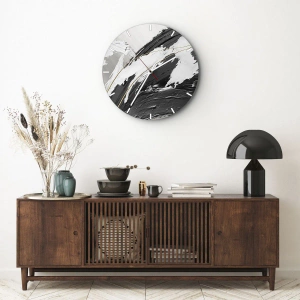 L'orologio è realizzato con vetro dello spessore di 4 mm. La tecnologia di realizzazione dell'orologio è conforme alla classe di resistenza 2B2 secondo la norma PN-EN 12600:2004, che garantisce resistenza agli urti. L'orologio su vetro è pronto per essere appeso: possiede un punto di sospensione metallico fissato sul retro dell'orologio e un distanziatore in schiuma che assicura la distanza uniforme dell'orologio dalla parete. L'orologio possiede un meccanismo silenzioso alimentato con una batteria da 1,5V, di tipo AA (la batteria non è inclusa nel completo).