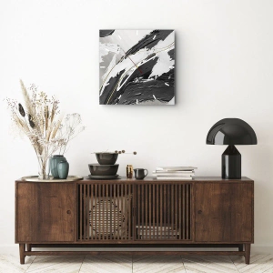 Orologio da parete - Orologio in Vetro - Pennellate di vernice bianca e nera con un sottile accento dorato - 30x30cm - Astrazione con sfarzo - Decorazione murale moderna per soggiorno e camera da letto ARTTOR