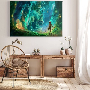 Quadro su tela - Stampe su Tela - Foresta magica con un personaggio esploratore - 70x50cm - Dal grande Libro delle Fiabe - Decorazione murale moderna per soggiorno e camera da letto ARTTOR