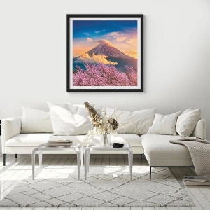 Poster in cornice nera - Il monte Fuji circondato dai fiori di ciliegio al tramonto - 50x70cm - Sacralità giapponese - Decorazione murale moderna per soggiorno e camera da letto ARTTOR