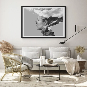 Poster in cornice nera - Ritratto montano nuvoloso - 30x30 cm
