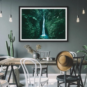 Poster in cornice nera - Una cascata circondata da una fitta vegetazione tropicale - 70x50cm - Terme tropicali - Decorazione murale moderna per soggiorno e camera da letto ARTTOR