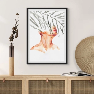 Poster in cornice nera - Donna acquerello con foglie di palma che le coprono il viso - 50x70cm - Sentire il polso dei tropici - Decorazione murale moderna per soggiorno e camera da letto ARTTOR