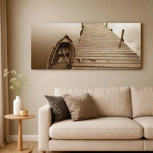 Quadro su tela - Stampe su Tela - Molo di legno e barca su un lago calmo - 70x100cm - La grande pace - Decorazione murale moderna per soggiorno e camera da letto ARTTOR