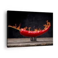 Quadro su tela - Stampe su Tela - Peperone rosso fiammeggiante su una forchetta - 70x50cm - Stuzzichino infuocato - Decorazione murale moderna per soggiorno e camera da letto ARTTOR
