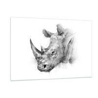 Quadro su vetro - Ritratto in bianco e nero di un rinoceronte in un approccio artistico - 120x80cm - Ritratto africano - Decorazione murale moderna per soggiorno e camera da letto ARTTOR