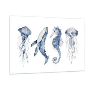 Quadro su vetro - Creature marine in un delicato stile acquerello - 120x80cm - Meraviglie del mare - Decorazione murale moderna per soggiorno e camera da letto ARTTOR