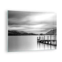 Quadro su vetro - Paesaggio in bianco e nero con un lago e un molo di legno - 70x50cm - Mitezza e forza - Decorazione murale moderna per soggiorno e camera da letto ARTTOR