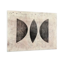 Quadro su vetro - Forme geometriche nere su sfondo beige - 100x70cm - Astrazione etnica - Decorazione murale moderna per soggiorno e camera da letto ARTTOR