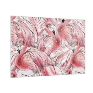 Quadro su vetro - Fenicotteri rosa in stile cartone animato decorativo - 100x70cm - Corpo di ballo alato - Decorazione murale moderna per soggiorno e camera da letto ARTTOR