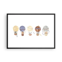 Poster in cornice nera - Simpatici animali in palloncini su sfondo bianco - 70x50cm - Amici in viaggio - Decorazione murale moderna per soggiorno e camera da letto ARTTOR