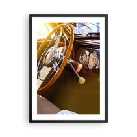 Poster in cornice nera - Interno di un'auto d'epoca con volante - 50x70cm - Un soffio di lusso dal passato - Decorazione murale moderna per soggiorno e camera da letto ARTTOR
