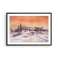Poster in cornice nera - Tramonto sul castello in uno scenario invernale - 70x50cm - Tramonto reale - Decorazione murale moderna per soggiorno e camera da letto ARTTOR