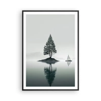 Poster in cornice nera - Un albero solitario su un'isola con un riflesso nell'acqua - 50x70cm - Paesaggio onirico - Decorazione murale moderna per soggiorno e camera da letto ARTTOR