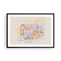 Poster in cornice nera - Linee astratte pastello che creano motivi geometrici - 70x50cm - Labirinto: avventura gioiosa - Decorazione murale moderna per soggiorno e camera da letto ARTTOR