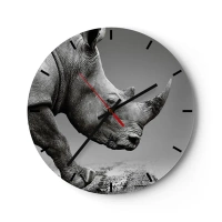 Orologio da parete - Orologio in Vetro - Un rinoceronte in stile bianco e nero su uno sfondo neutro - 30x30cm - Forza irrefrenabile - Decorazione murale moderna per soggiorno, cucina e camera da letto ARTTOR