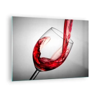 Quadro su vetro - Vino rosso versato in un bicchiere su uno sfondo chiaro - 70x50cm - Colore - movimento - suono - Decorazione murale moderna per soggiorno e camera da letto ARTTOR