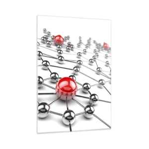 Quadro su vetro - Rete molecolare argentata con accenti rossi - 50x70cm - Rete argentea - Decorazione murale moderna per soggiorno e camera da letto ARTTOR