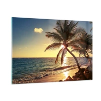 Quadro su vetro - Spiaggia tropicale con palme alla luce del sole al tramonto - 100x70cm - Estate sotto le palme - Decorazione murale moderna per soggiorno e camera da letto ARTTOR