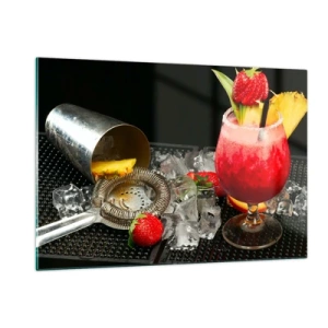Quadro su vetro - Una bevanda colorata con frutta e uno shaker con ghiaccio - 120x80cm - Incantare il gusto - Decorazione murale moderna per soggiorno e camera da letto ARTTOR